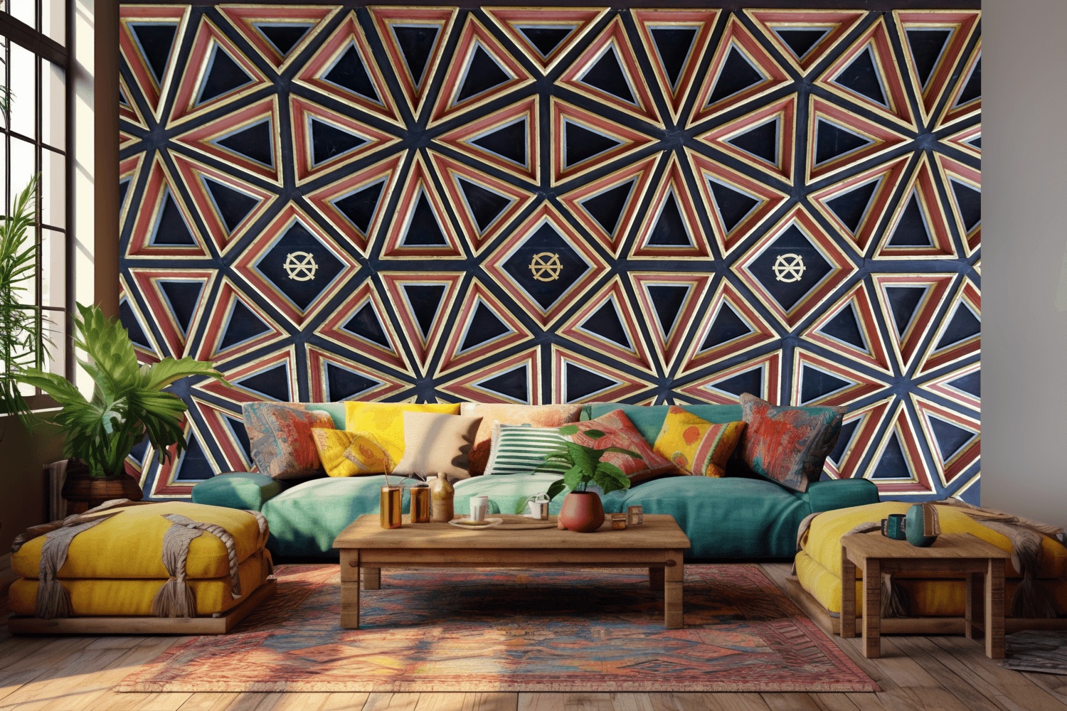 Breng een unieke sfeer in je ruimte met de Geometrische Goudrijke Wandharmonie. Dit verbluffende behang combineert een complex web van driehoeken met verfijnde goudtinten, wat zorgt voor een speelse maar elegante uitstraling. De diepe kleuren en subtiele patronen creëren een dynamisch geheel dat perfect past in zowel moderne als traditionele interieurs. De Geometrische Goudrijke Wandharmonie is niet zomaar een wandbekleding; het is een statement piece dat uw muren tot leven brengt. Transformeer uw huis tot een kunstwerk met deze unieke muurbedekking.