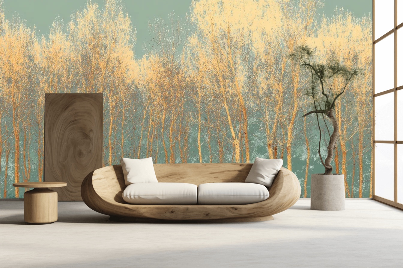 Laat je omringen door de kalmerende schoonheid van het ‘Golden Forest Serenity Wallpaper’. Dit betoverende ontwerp vangt de schittering van gouden bomen die zich uitstrekken naar de hemel tegen een zachte, blauwachtige achtergrond. De subtiele kleuren zorgen voor een serene en rustige atmosfeer in elke ruimte. Met het ‘Golden Forest Serenity Wallpaper’ creëer je binnen no-time een natuurlijke oase in je huis, ideaal om tot rust te komen na een lange dag. Laat de natuur binnenstromen en voel de magie van dit prachtige boslandschap.