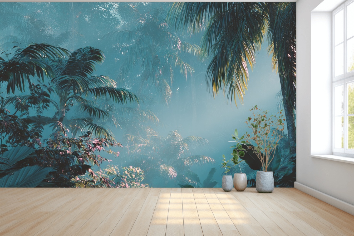 Ontsnap naar een wereld van rust met het Mystical Jungle Morning Escape behang. Dit prachtige ontwerp vangt de essentie van een sprookjesachtig regenwoud, gehuld in het zachte licht van een ochtendmist. De levendige tinten groen en blauw brengen een gevoel van frisheid en sereniteit in elke ruimte. Perfect voor wie verlangt naar een vleugje natuurpracht in huis, biedt dit behang een visuele reis naar exotische oorden. Transformeer je woonkamer of slaapkamer in een oase van kalmte met het Mystical Jungle Morning Escape behang.