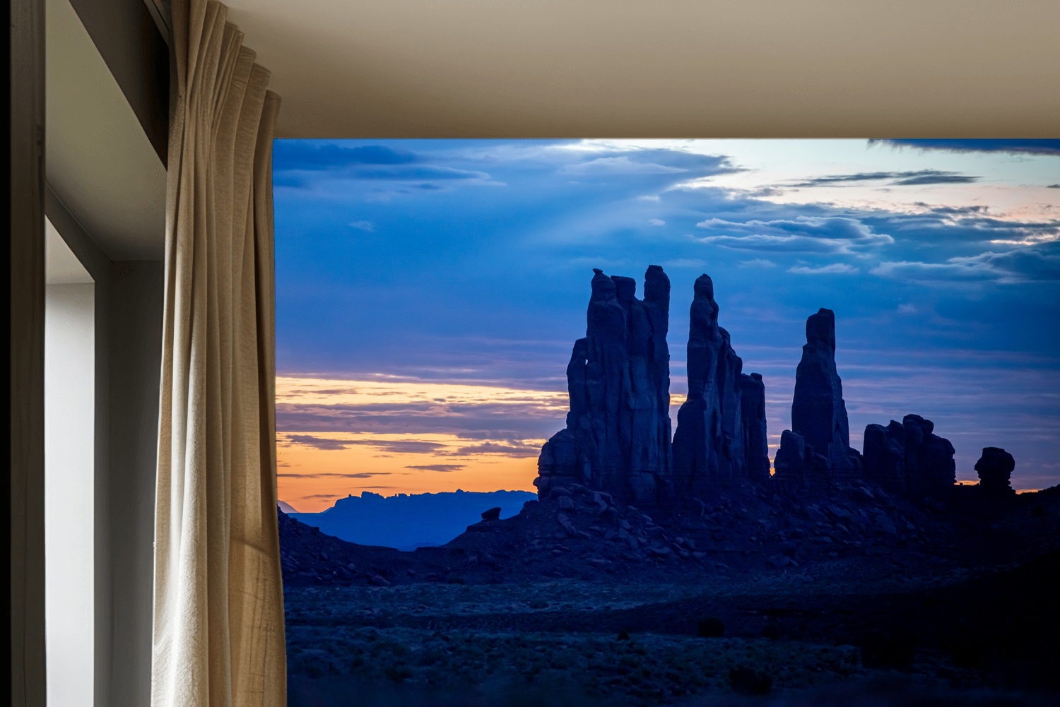 Breng de ruige schoonheid van de woestijn in huis met ons fotobehang ‘Mystieke Woestijnsilhouetten bij Zonsondergang’. Deze intrigerende afbeelding vangt het moment waarop de dag overgaat in nacht, met indrukwekkende rotsformaties die zich krachtig aftekenen tegen een kleurrijke hemel. De diepblauwe en oranje tinten zorgen voor een warme maar mysterieuze sfeer in elke ruimte. Perfect voor wie houdt van avontuur en de rust van de natuur. Transformeer uw muur in een kunstwerk en geniet dagelijks van het majestueuze landschap van de woestijn.