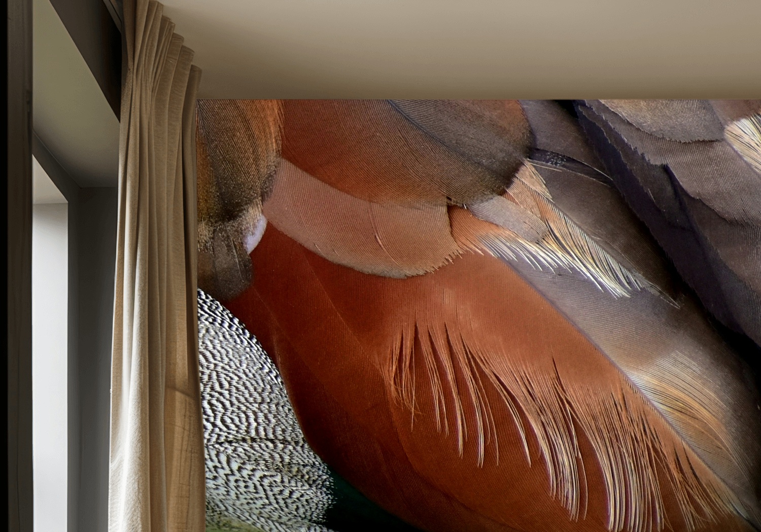 Fotobehang Veerachtige Kleurenpracht in Natuurlijke Harmonie