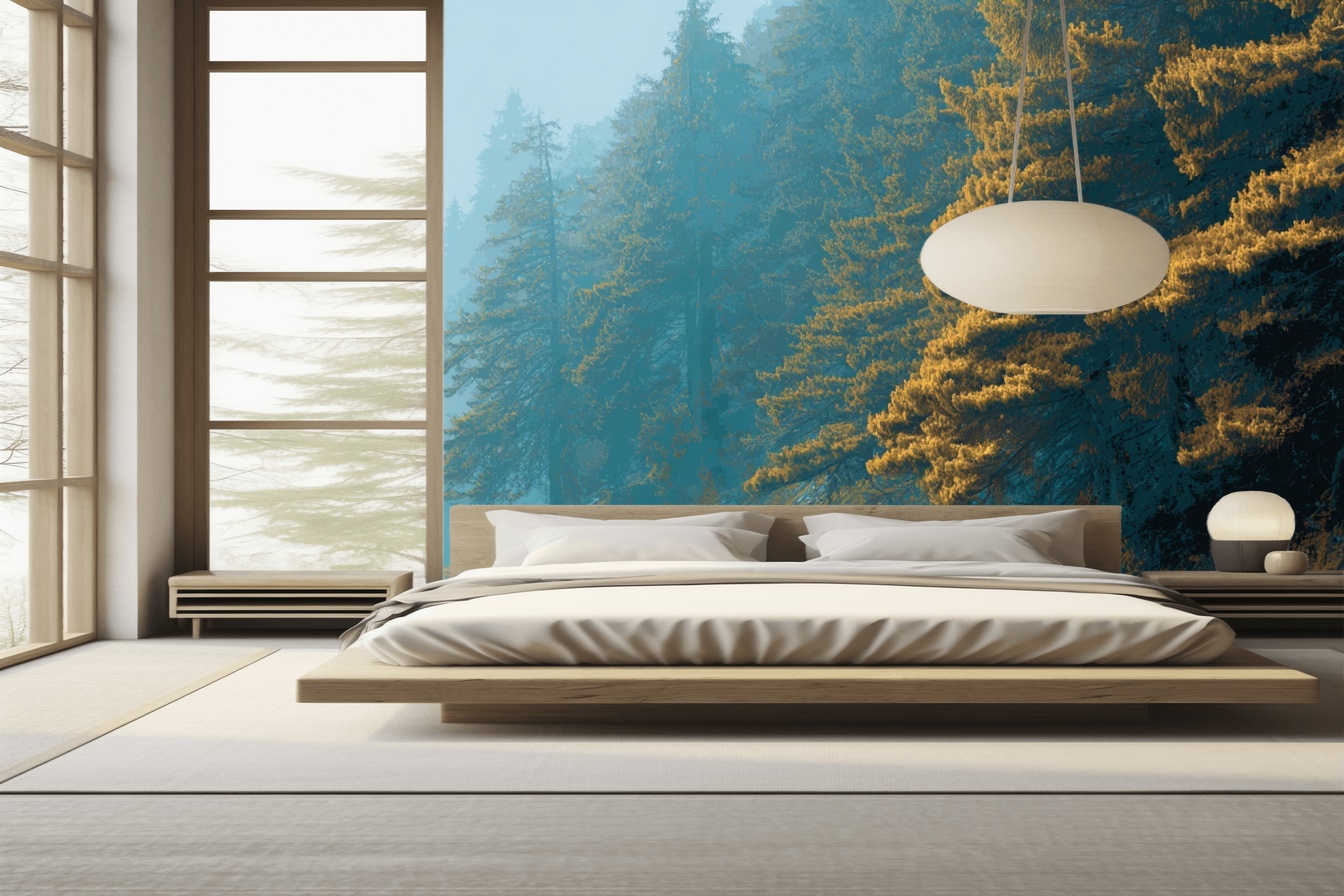 Stap binnen in een wereld van rust en sereniteit met dit verbluffende fotografische behang. ‘Whispers of Misty Pines’ omhult je ruimte met een dromerige scène van mistige bossen en kalme wateren, perfect om een gevoel van natuurlijk evenwicht te creëren. De zachte tinten blauw en goud zorgen voor een magische sfeer, terwijl de gedetailleerde afdruk je uitnodigt om je eigen avonturen in dit betoverende landschap te verkennen. Ideaal voor een woon- of slaapkamer, dit decoratieve stuk brengt de rust van de natuur naar jouw huis. Laat je inspireren door de stille fluisteringen van de bomen en de mysteries die in de verte verscholen liggen.