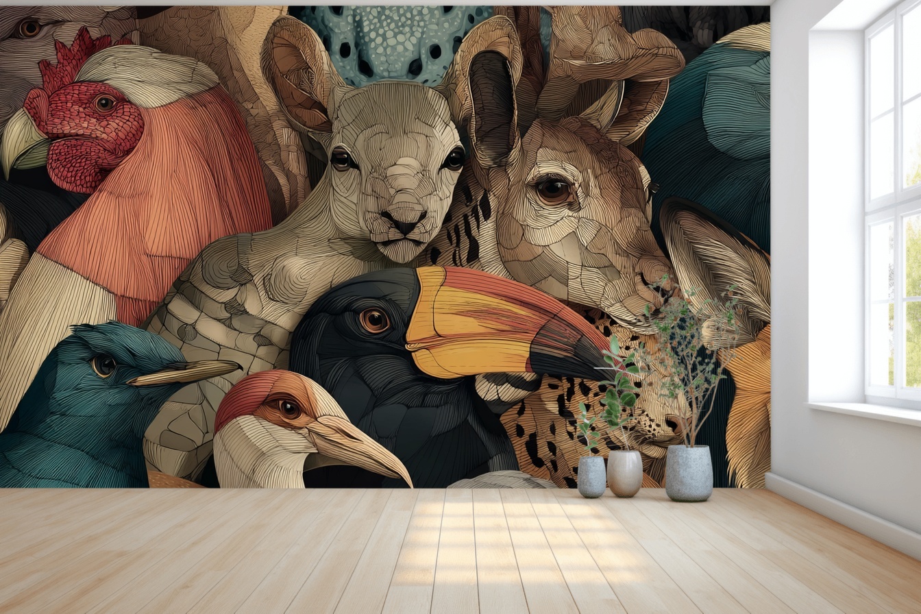 Breng de betovering van de dierenwereld in huis met het ‘Wildlife Symphony Tapestry Wall Art’ behang. Dit schitterende kunstwerk vangt een divers gezelschap van dieren, geïllustreerd met verfijnde penseelstreken en levendige kleuren. Van de majestueuze giraf tot de speelse vos, elke blik vangt de essentie van de natuur en ademt avontuur. Dit behang is ideaal voor iedereen die een statement wil maken in zijn interieur, terwijl het tegelijkertijd een vleugje wilde schoonheid toevoegt aan elke ruimte. Laat je inspireren door de harmonie en variëteit van het dierenrijk, perfect geërflecteerd in dit unieke ontwerp.